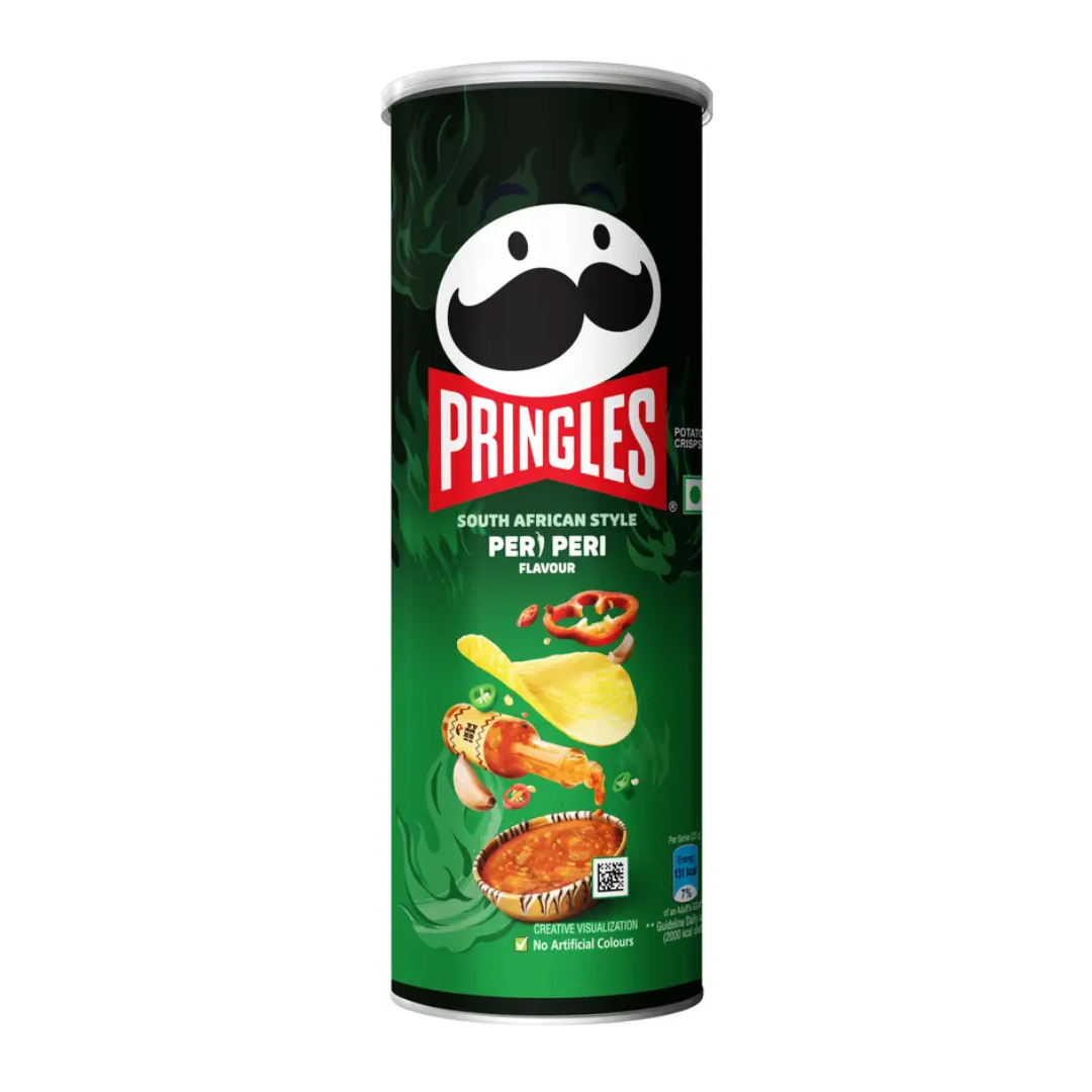 - Relish the classic, Pringles Potato Chips in its South African Style Peri Peri flavour – the perfect snack, loved by everyone for its delicious taste and crispy texture. UNIQUELY SHAPED – Pringles is known for its unique shape, perfectly seasoned from edge to edge, for full savoury goodness in each bite! Its light and crispy and comes in a can. ENJOY ON MANY OCCASIONS – Pop a can to add some crunch to lunch sandwich, indulge in a midnight munch with your favourite drink, stay energized as you game grease-free, pack it in a picnic, its always more fun with Pringles Potato Chips! STACKABLE AND CONVENIENT – Everyones favourite stackable chips that are kept unbroken and sealed air-tight with a freshness that pops! You can even stack ’em up to innovate your own flavour combo. PERI PERI FLAVOUR – Try our South African Style Peri Peri flavour! Unlike other potato chips, Pringles Potato Chips are made from a mix of potato, rice flour, corn flour, and wheat starch.
